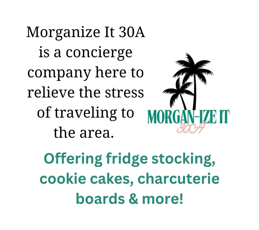 First and foremost, if you are traveling to 30A with your family, I highly recommend using Morganize It 30A to stock your fridge and pantry with your grocery list before you arrive. In the summer, vacation rental homes typically only allow week long rentals from Saturday to Saturday... which means the grocery stores on Saturdays are CROWDED and full of overflowing grocery carts! Grocery shopping on these days is unpleasant to say the least, especially if you need to buy a lot of stuff. Expect long lines at checkout. For a very reasonable fee + the cost of groceries, Morgan will shop for you and stock your fridge and pantry before you arrive. I've personally used her when I had family visiting, and I can't recommend her enough. It allowed us to spend even more time together, and maximize their time at the beach. This service is SO worth it if you want a stress free check in, and so you don't have to waste your first day on 30A gathering groceries. Book her here! (She also makes fantastic cookie cakes!)
